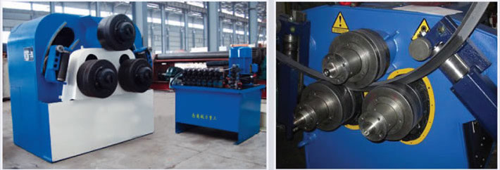 型材彎曲機是弧線下調型材卷彎機,該機可一次上料完成型材的預彎、卷圓和校圓工序。機器的兩個下輥為主傳動輥,也可以三個工作輥為主傳動輥,上輥位置固定,兩個邊輥圍繞固定回轉中心作弧線升降運動,液壓控制,位移液晶顯示,顯示精度±0.1mm,有利于控制型材成形過程;兩側設有托輥裝置,有利于保證非對稱截面型材的卷制質量,本機結構先進,功能全,是目前國內外先進的型材成型設備,可根據用戶使用情況立放或臥放。